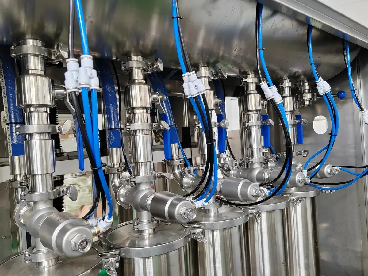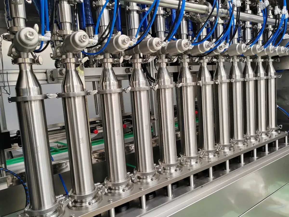 - El pistón y las boquillas de llenado están fabricados en acero inoxidable 304L/316. Las juntas son resistentes a la corrosión y adaptables a diversos líquidos. Todo el equipo de llenado cumple con las normas sanitarias GMP.