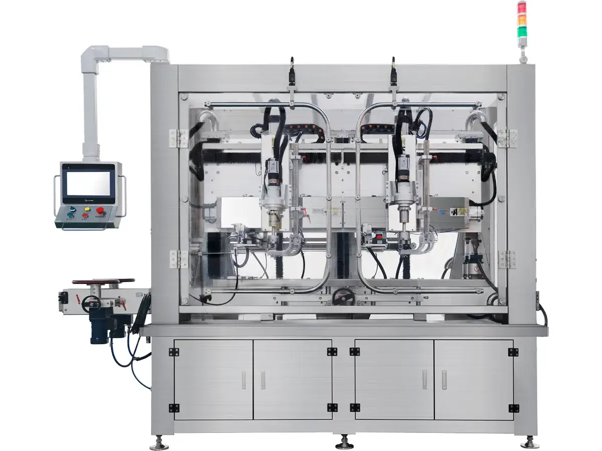 - La unidad de colocación de tapas garantiza un posicionamiento y sellado precisos, uniformes y fiables de la tapa.