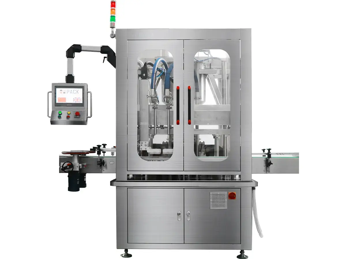 Puede configurarse con 2 a 4 boquillas, alcanzando una capacidad de producción de 1800 a 6000 botellas por hora. La precisión de llenado se mantiene en ±2-3ml para volúmenes de hasta 1000ml y en ±3-5ml para volúmenes de hasta 5000ml.